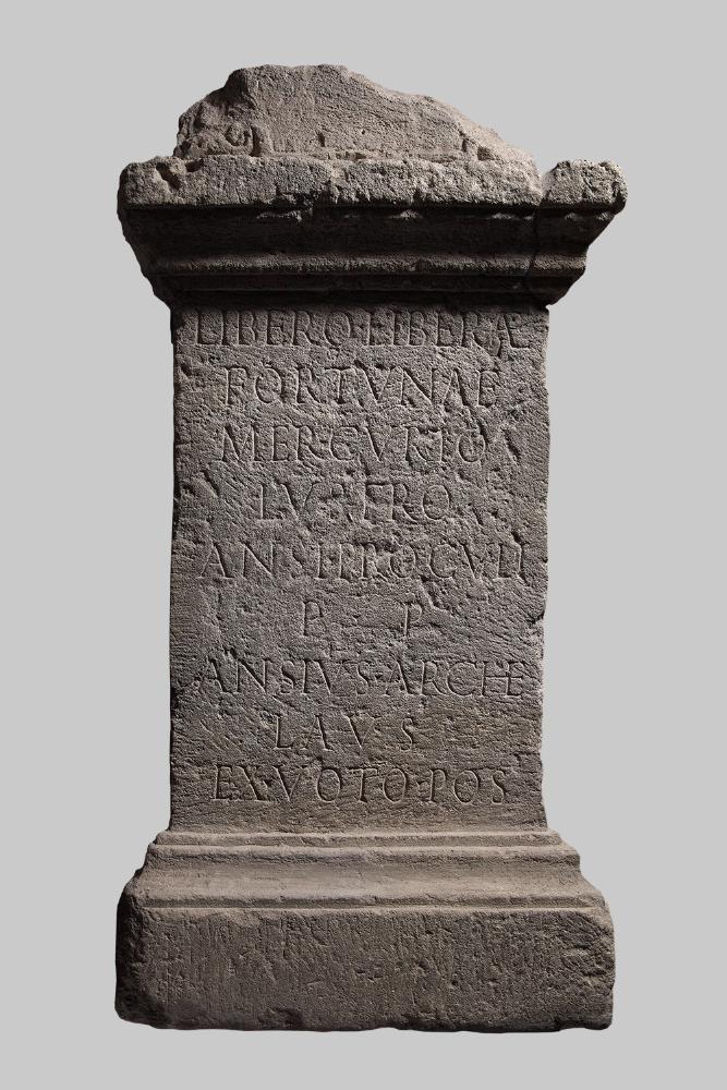 Libero Liberae / Fortunae / Mercurio / lustro / Ansi Proculi / p(rimi)p(ili) / Ansius Arche/laus / ex voto pos(uit)