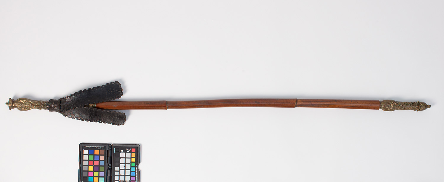 Technische DetailsLederverzierung, Eisennägel und Textilbänder zur Montage