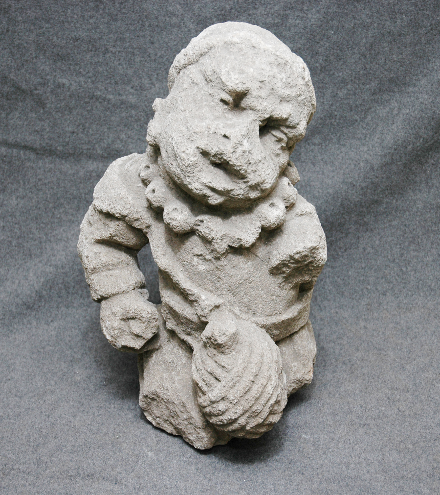 Sandsteinfigur eines Schandmännleins. Erhalten ist dieselbe bis oberhalb des Knies. Kopf zur linken Seite geneigt, herausgestreckte Zunge. Um den Hals trägt es einen Schellenkranz, vor sich einen großen Knäul aus Stricken. Die rechte Hand zeigt in Richtung Scham. Es diente als Bezeichnung der Schandecke in Mautern.