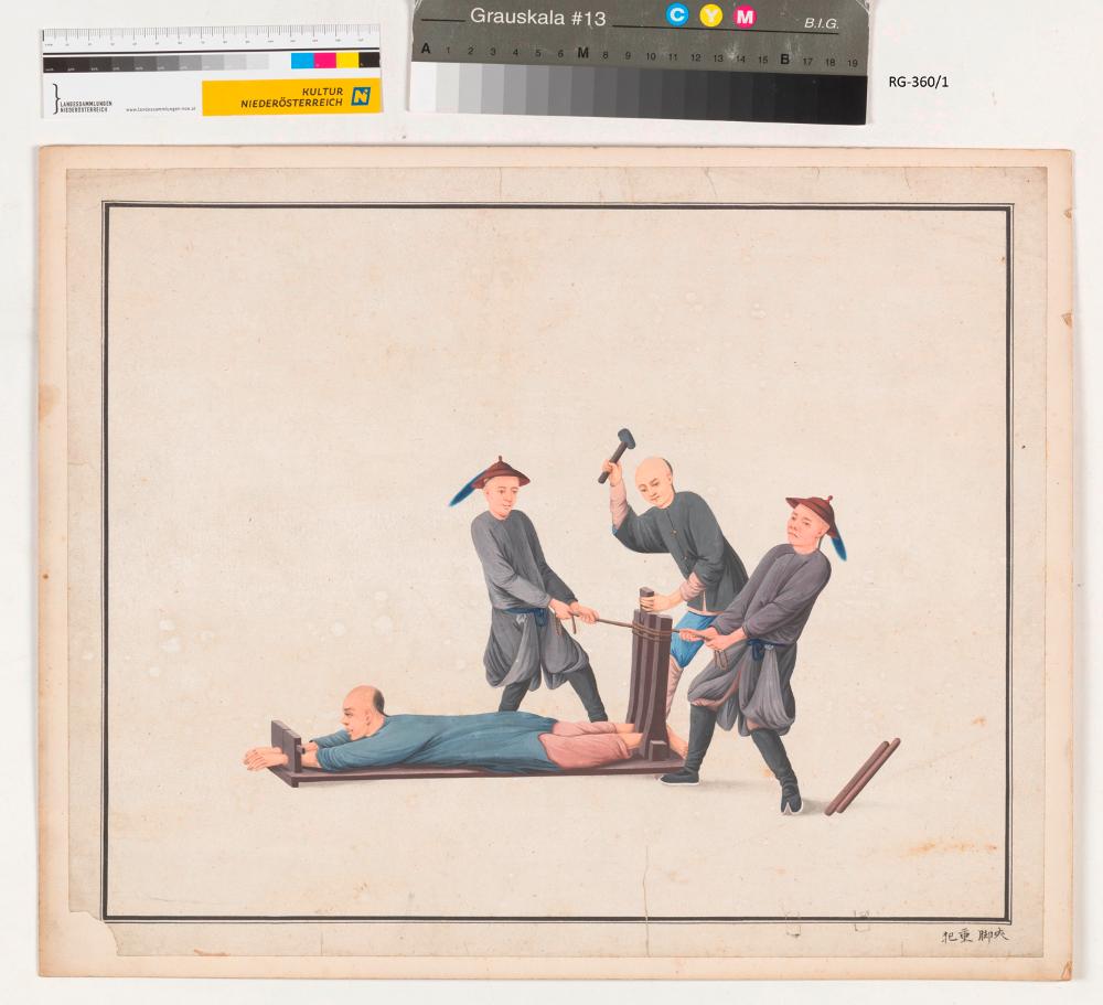 Bestrafung auf der Streckbank; aus "Serie chinesischer Folterszenen"