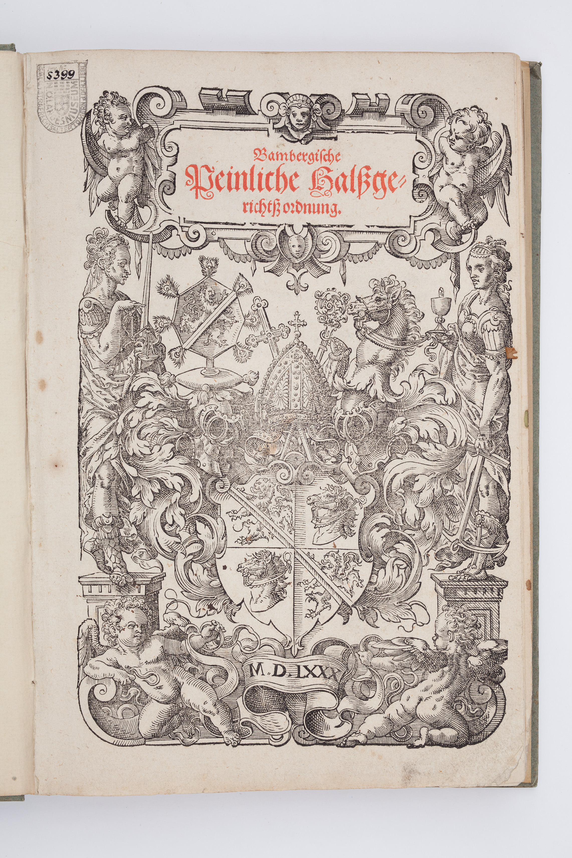 Verfasser des 1507 erstmals im Druck erschienen Rechtsbuches war der Bamberger Hofrichter Johann von Schwarzenberg. An die Stelle der bis dahin üblichen Privatklage trat nun die amtiche Untersuchung und Strafverfolgung. Mit der Übernahme dieses Inquisitionsprinzipes wurde das Geständnis zum zentralen Beweismittel. Deshalb sah die Halsgerichtsordnung auch die "peinliche" - die Pein verursachende - Befragung als Mittel der Wahrheitsfindung vor. Allerdings war die Anwendung der Tortur an strenge Voraussetzungen gebunden. Nachdruck aus dem 1580. Mit den Holzschnitten der ersten Auflage.