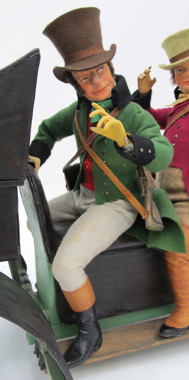 Jäger mit braunem Zylinder und grünem Jagdfrack.