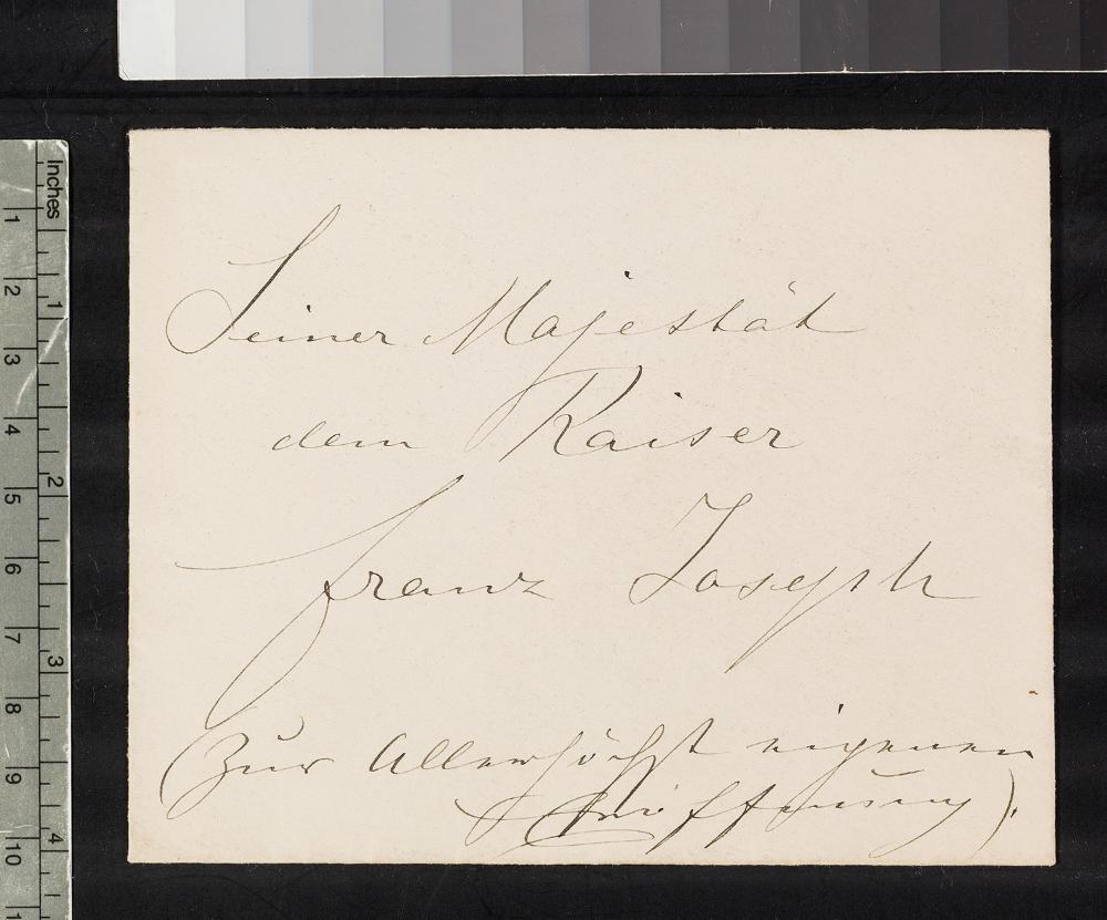 Katharina Schratt - Briefkuvert an Kaiser Franz Joseph I., eigenhändig beschriftet: "Seiner Majestät dem Kaiser Franz Joseph (Zur Allerhöchsten eigenen Eröffnung)"