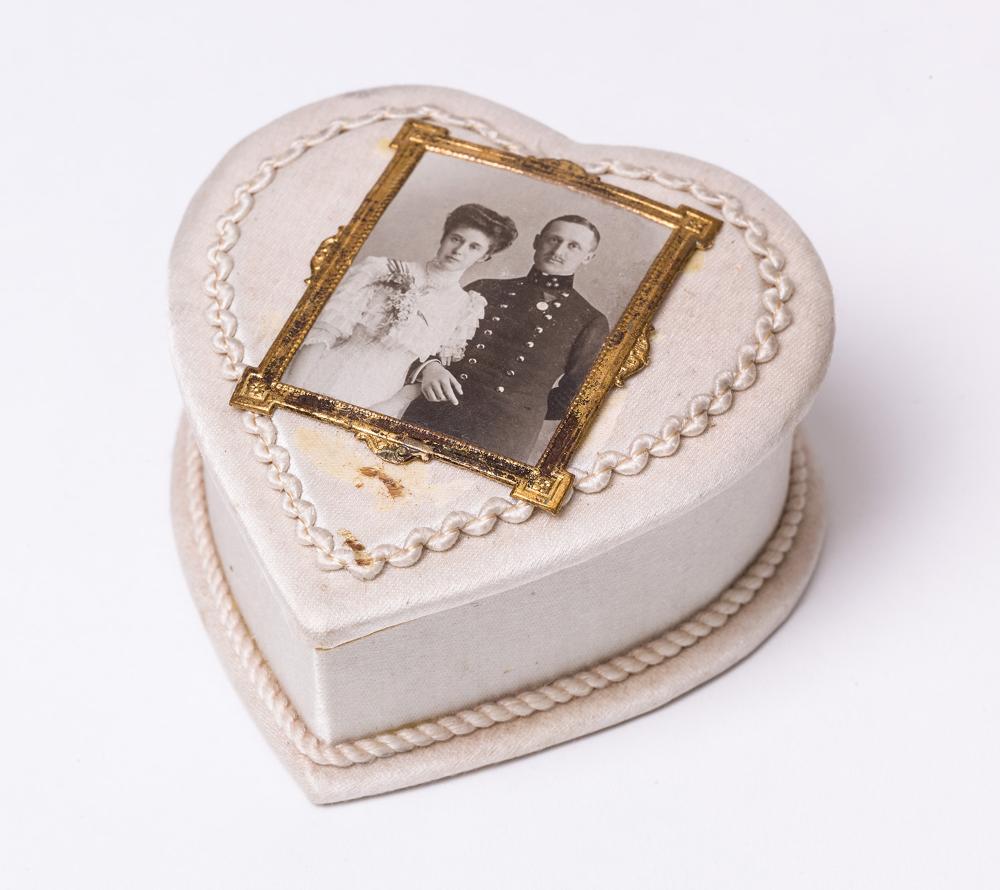 Kaiserlicher Hof - Hoftafelbonbonniere. Dose mit einer Photographie von Erzherzogin Elisabeth (Tochter von Kaiser Franz Joseph I. und Kaiserin Elisabeth) und ihrem ersten Ehemann, Otto Fürst Windischgraetz