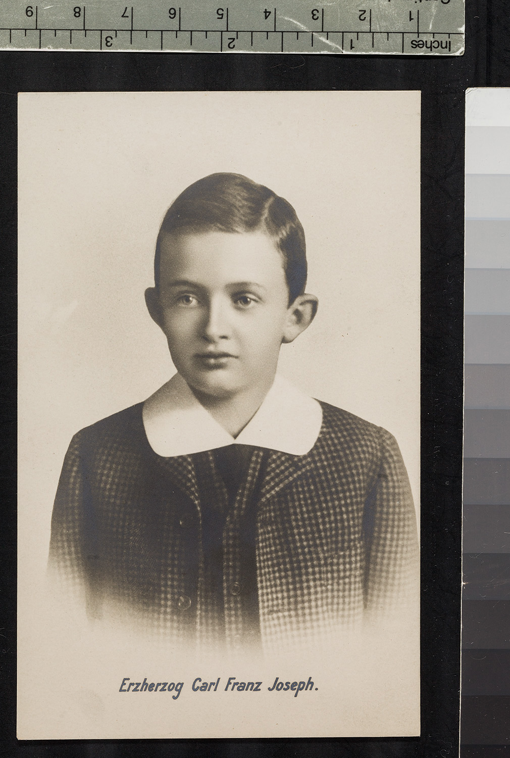 Kaiser Karl - Correspondenzkarte mit Fotografie des jungen Erzherzogs im Alter von ca. 10 Jahren