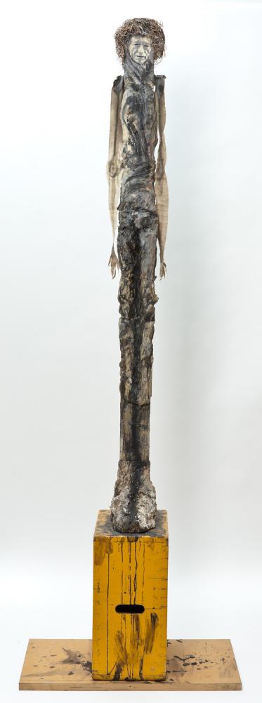 In Adolf Frohners Schaffen stehen Malerei und Grafik im Vordergrund. Doch auch das plastische Arbeiten war ihm stets ein Anliegen: „Trotzdem ich einige Male zu internationalen Biennalen als Maler geschickt wurde, als Maler gelte, eine Klasse für Malerei leite, bezeichne ich mich auch als Bildhauer. Das Wort Bildhauer hat etwas Gewalttätiges, das reizt mich.“ (1) Die Aussage Frohners öffnet den Blick für einen wesentlichen Aspekt seines Schaffens: den Entstehungsprozess und den Werkbegriff als ein Phänomen des Körperlichen. Dies führt zur Entstehung von Bildobjekten wie etwa dem Monument für Henry Miller 1963, bei dem er durch Aufschlitzen, Reißen, Verformen des Bildkörpers eine Metapher der Verletzung entwickelt. Sie pointieren die kritischen Reflexionen gesellschaftlicher Tabubereiche und Verdrängungsmechanismen, die schon in der aktionistischen Phase anklangen.