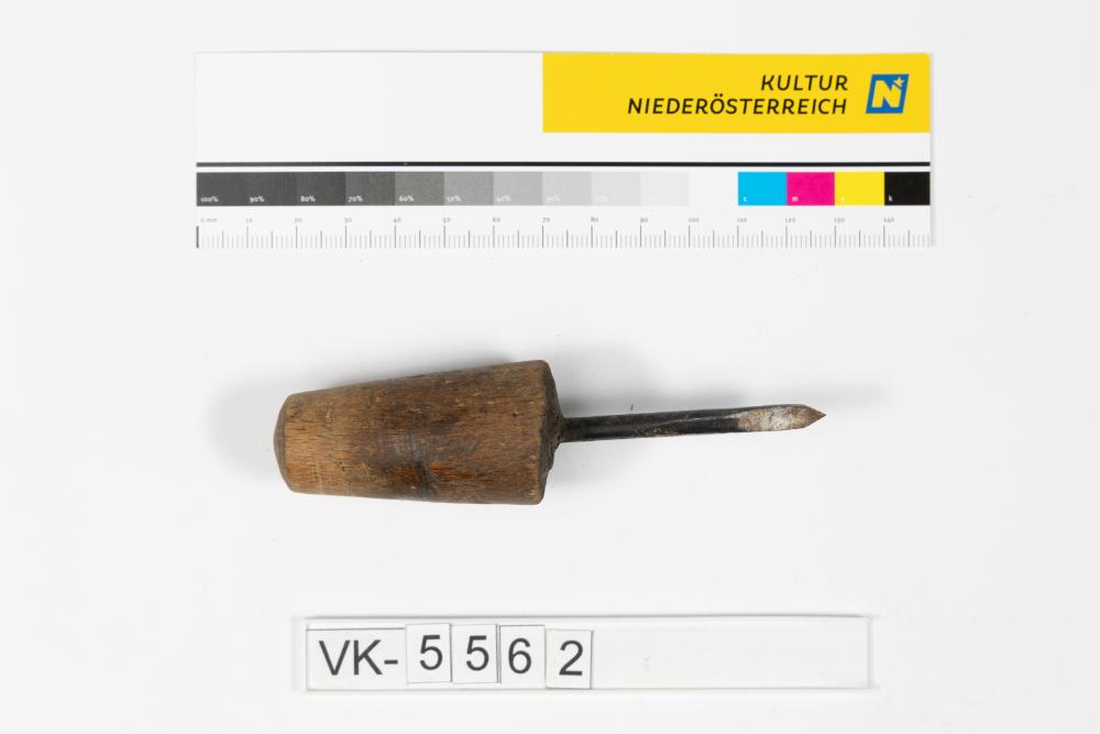 Bohrer mit abgeschrägter Spitze mit einem kurzen, leicht konischen Holzgriff.