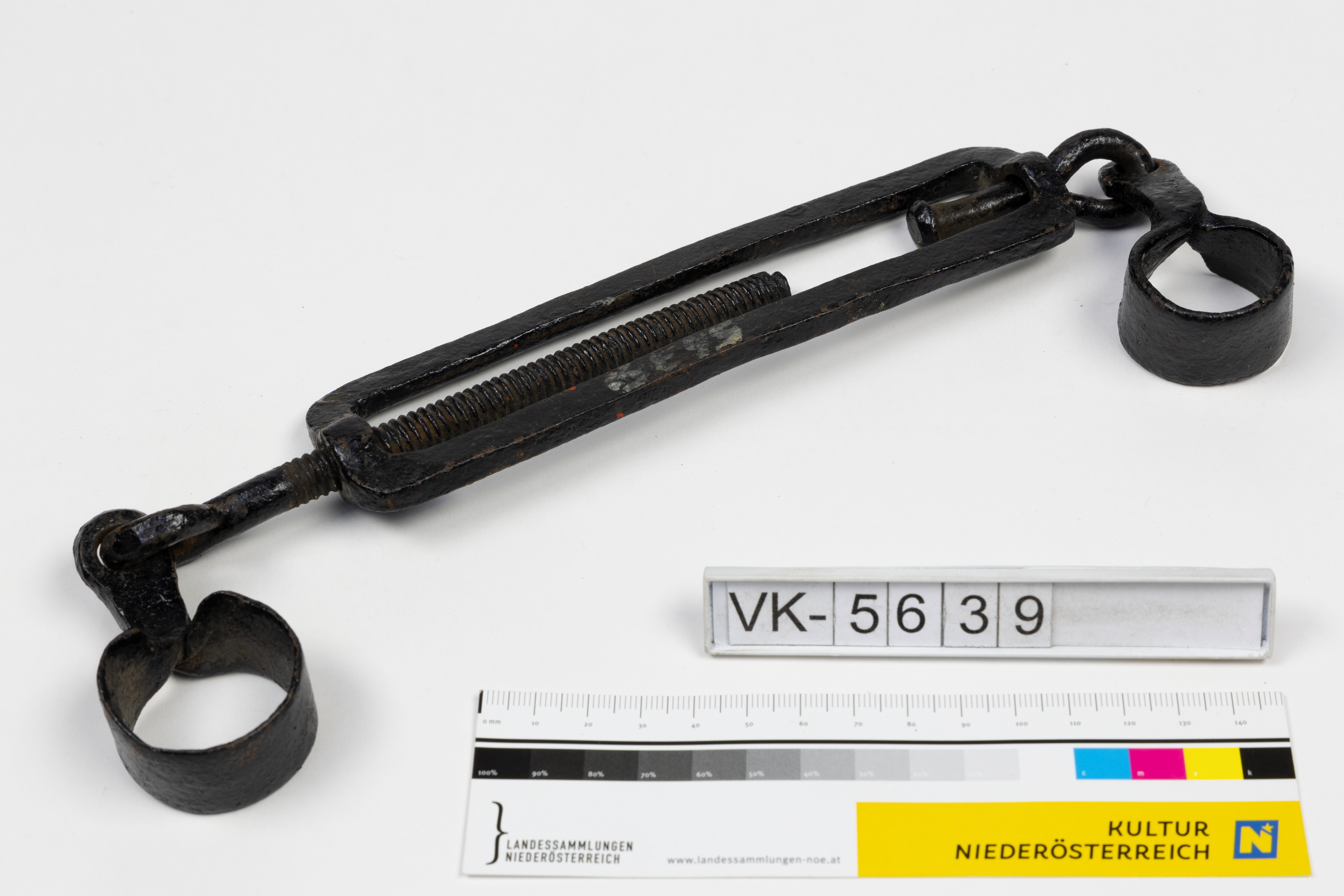 Spanngerät mit einer Gewindestange, einem rechteckigen Rahmen und zwei großen Ösen.
