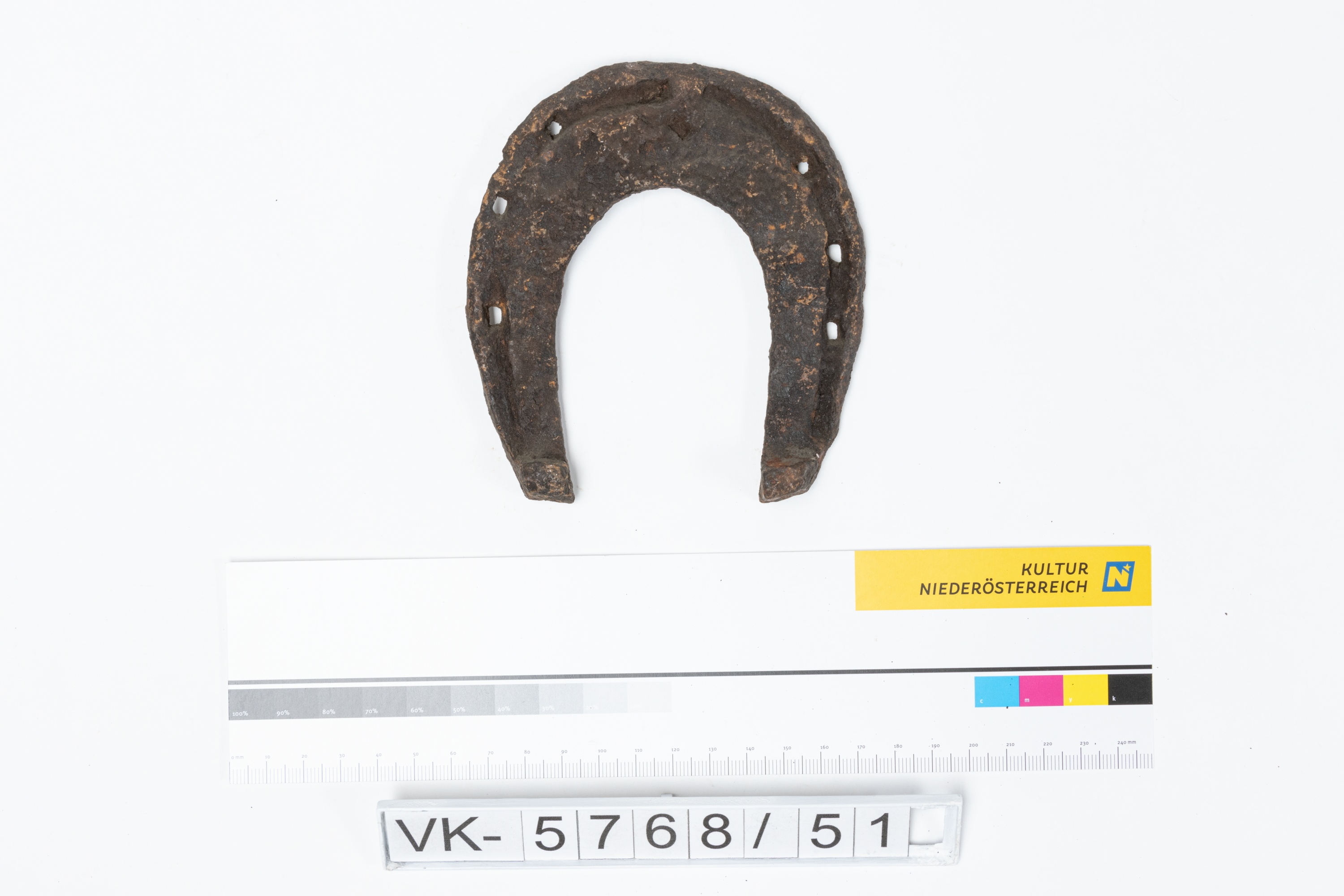 Hufeisen mit Löchern für Nägel. Laut Inventarbuch mit Schmiedezeichen.