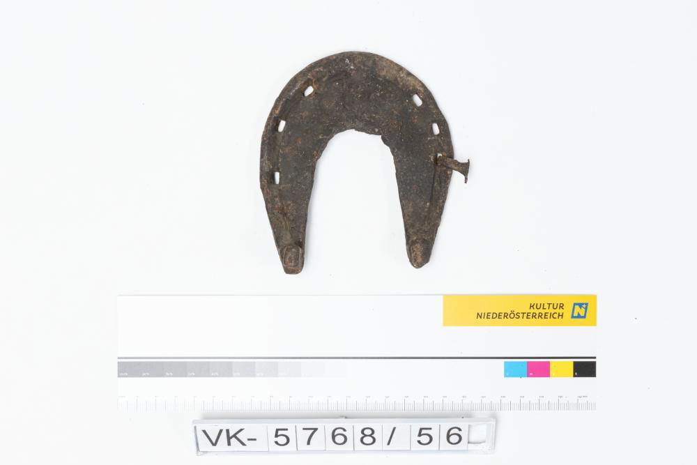 Hufeisen mit Löchern für Nägel. Laut Inventarbuch mit Schmiedezeichen. 1907 gefunden.