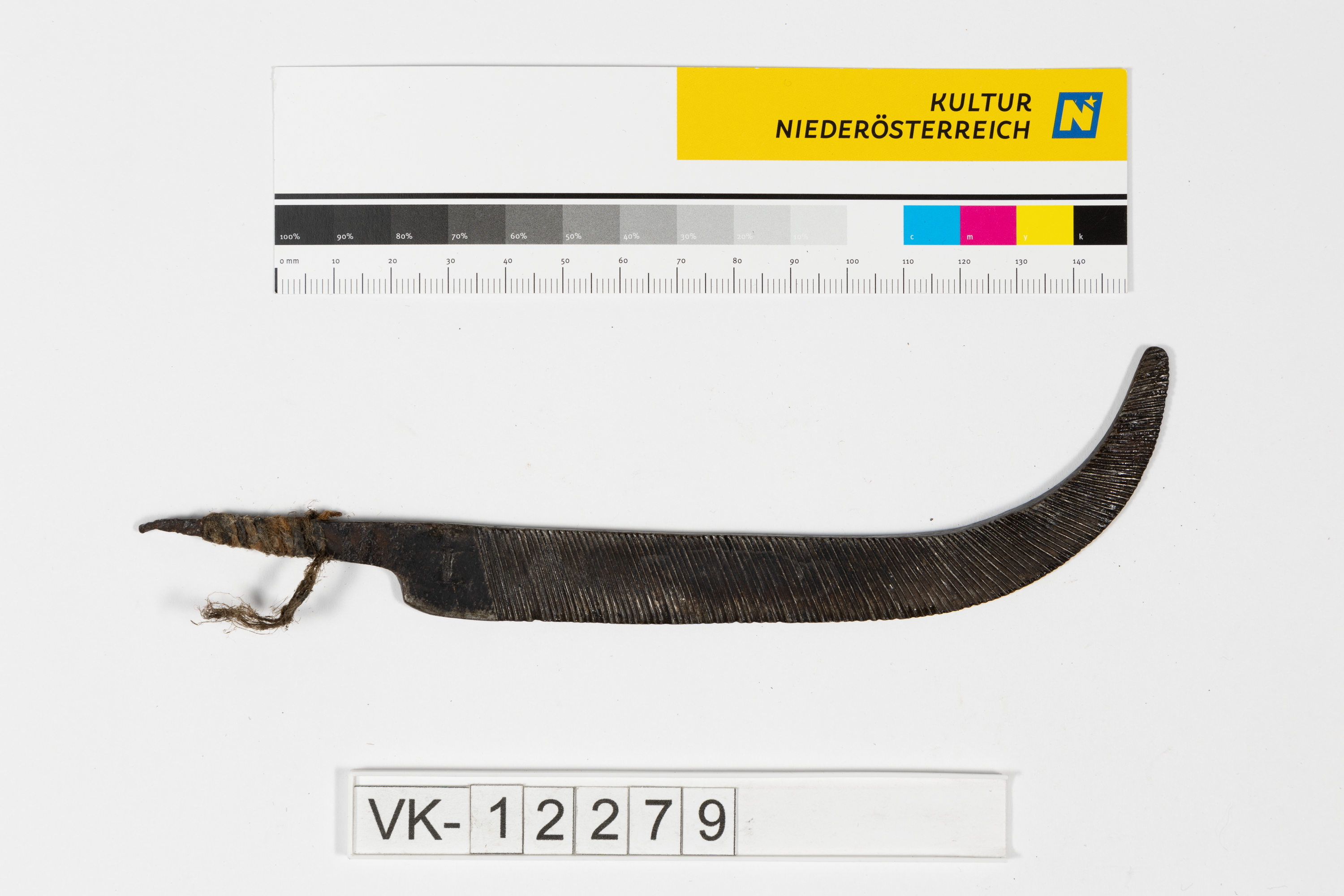 Zum Ende hin säbelartig aufgebogene Feile, deren anderes Ende zu einer Spitze (zum Einstecken in ein Heft) geschmiedet ist.