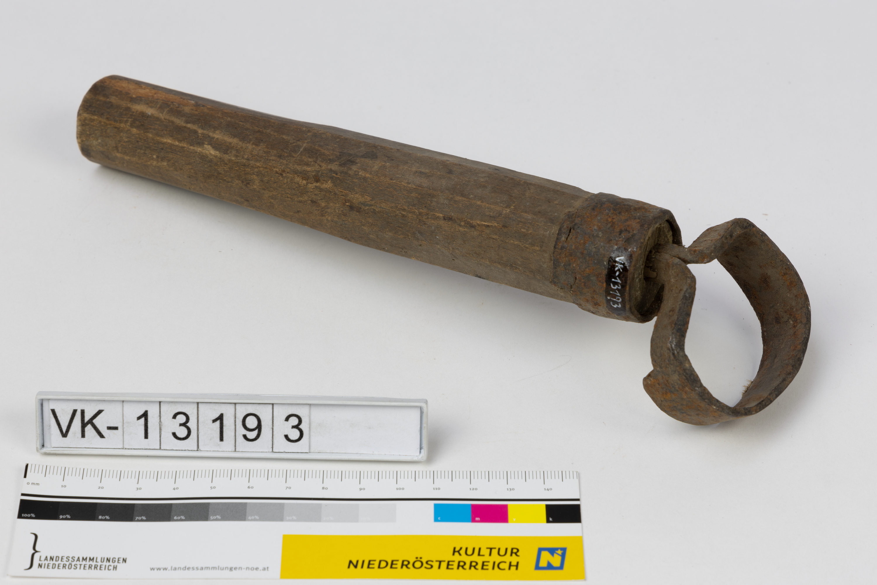 Schabmesser mit U-förmiger Klinge und einem Holzstiel.