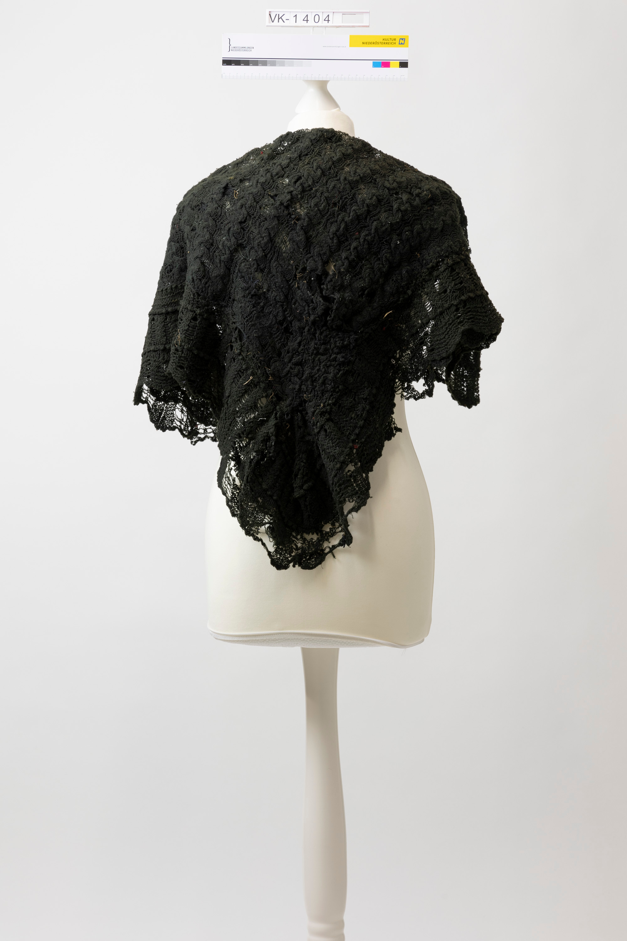 Durchbrochen gehäkeltes schwarzes Tuch.