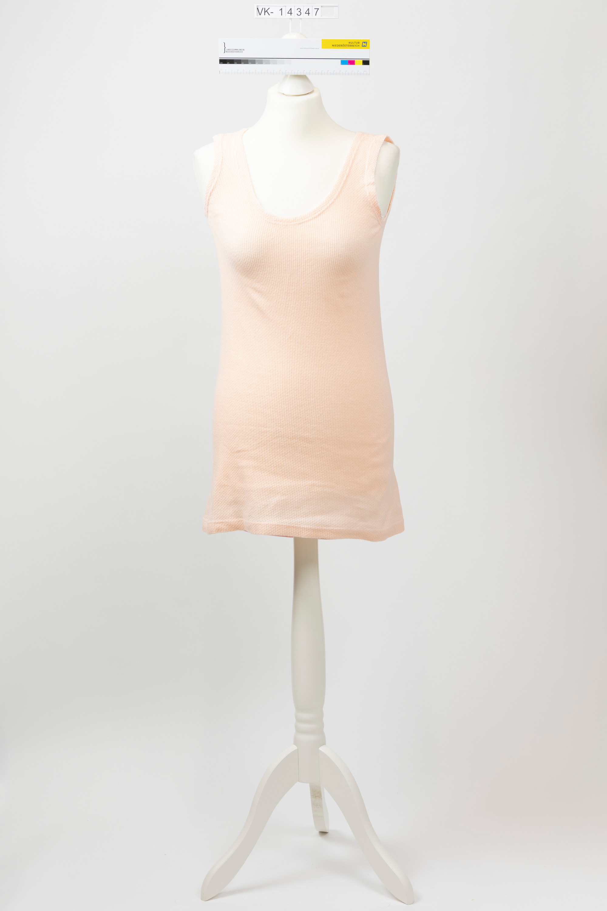 Hellrosa Trägernachthemd aus Baumwolljersey, auf einer Seite mit einem eingesetzten rosa Stoffstreifen erweitert.