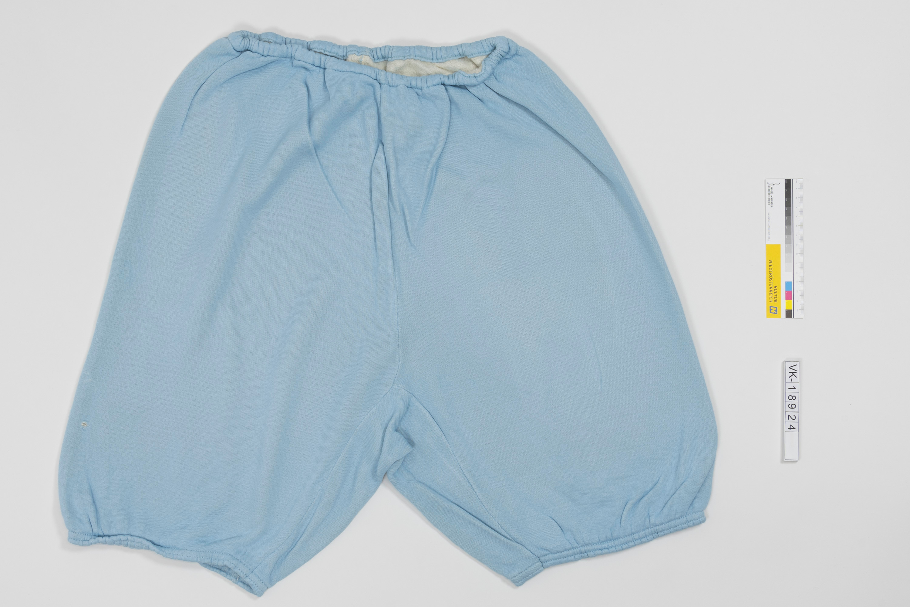 Außen hellblaue und innen weiße Unterhose aus Baumwolle mit Gummizug im Bund.
