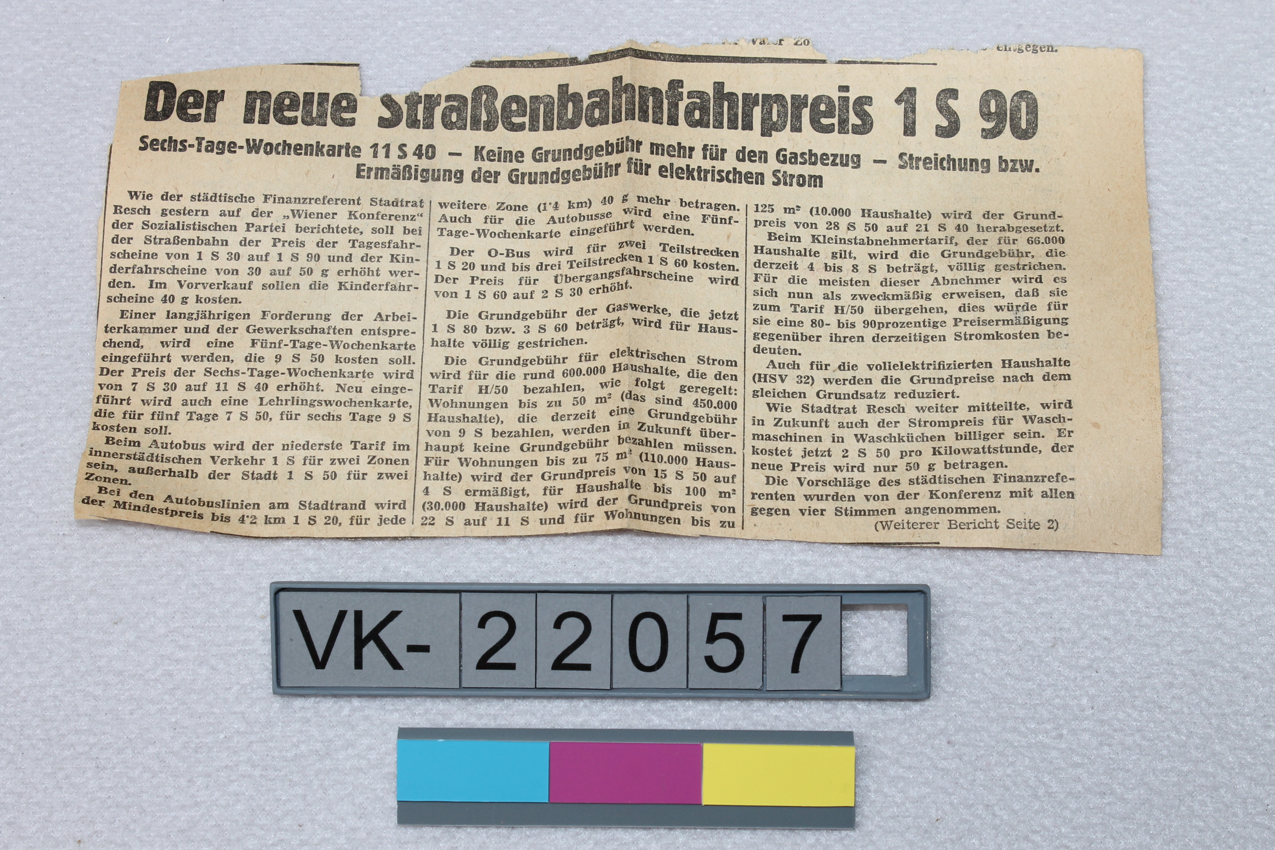 Zeitungsausschnitt mit einem Artikel zu Straßenbahnfahrscheinen.