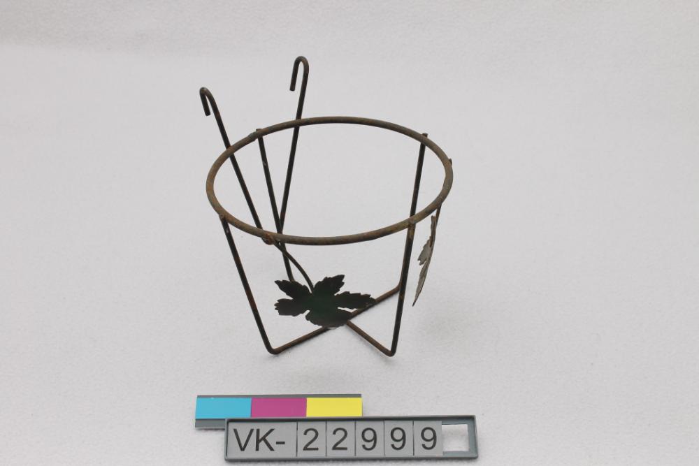 Hängekäfig für einen Blumentopf, verziert mit zwei Weinlaubelementen.