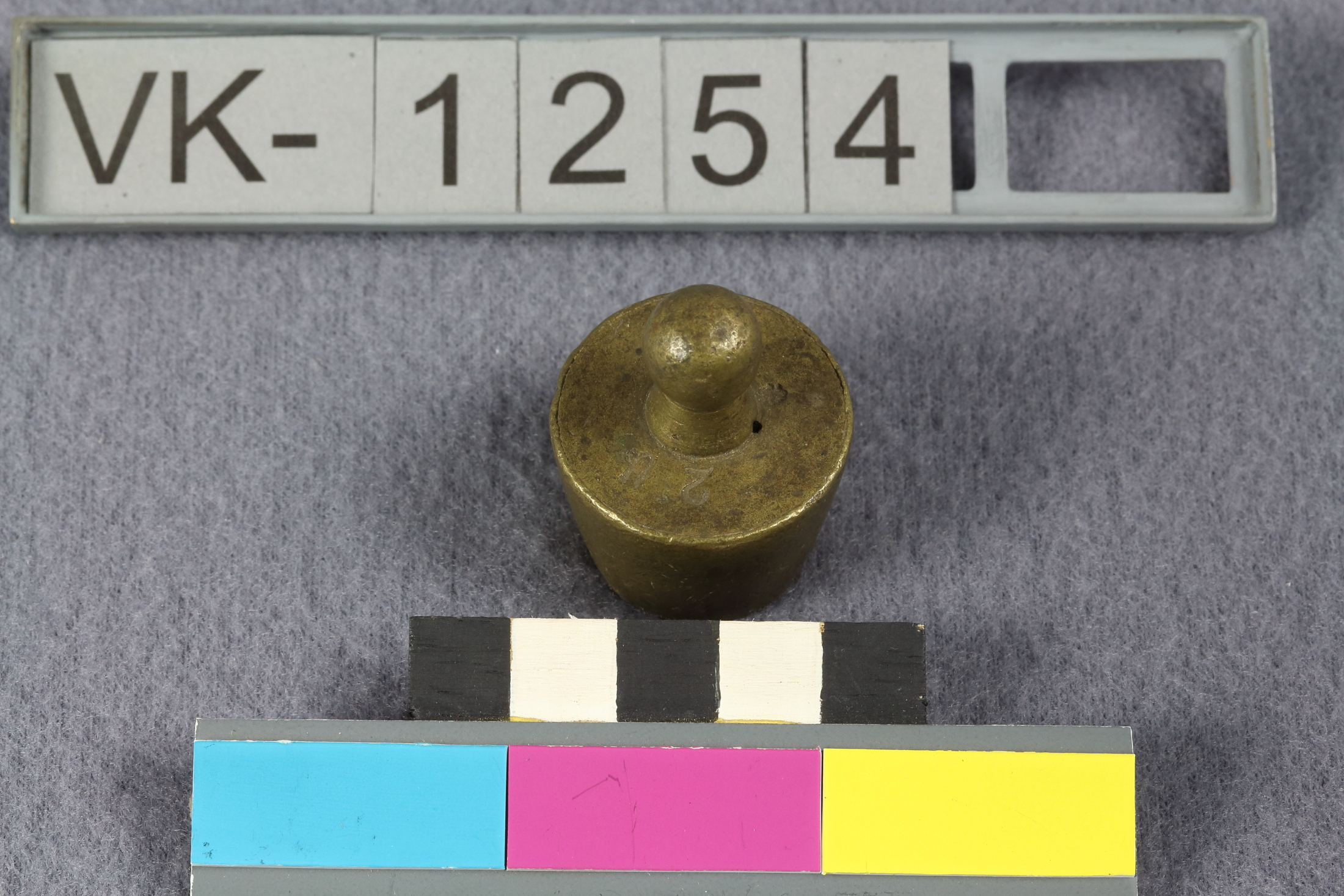 Rundes Gewicht mit Knauf und diversen Punzierungen.