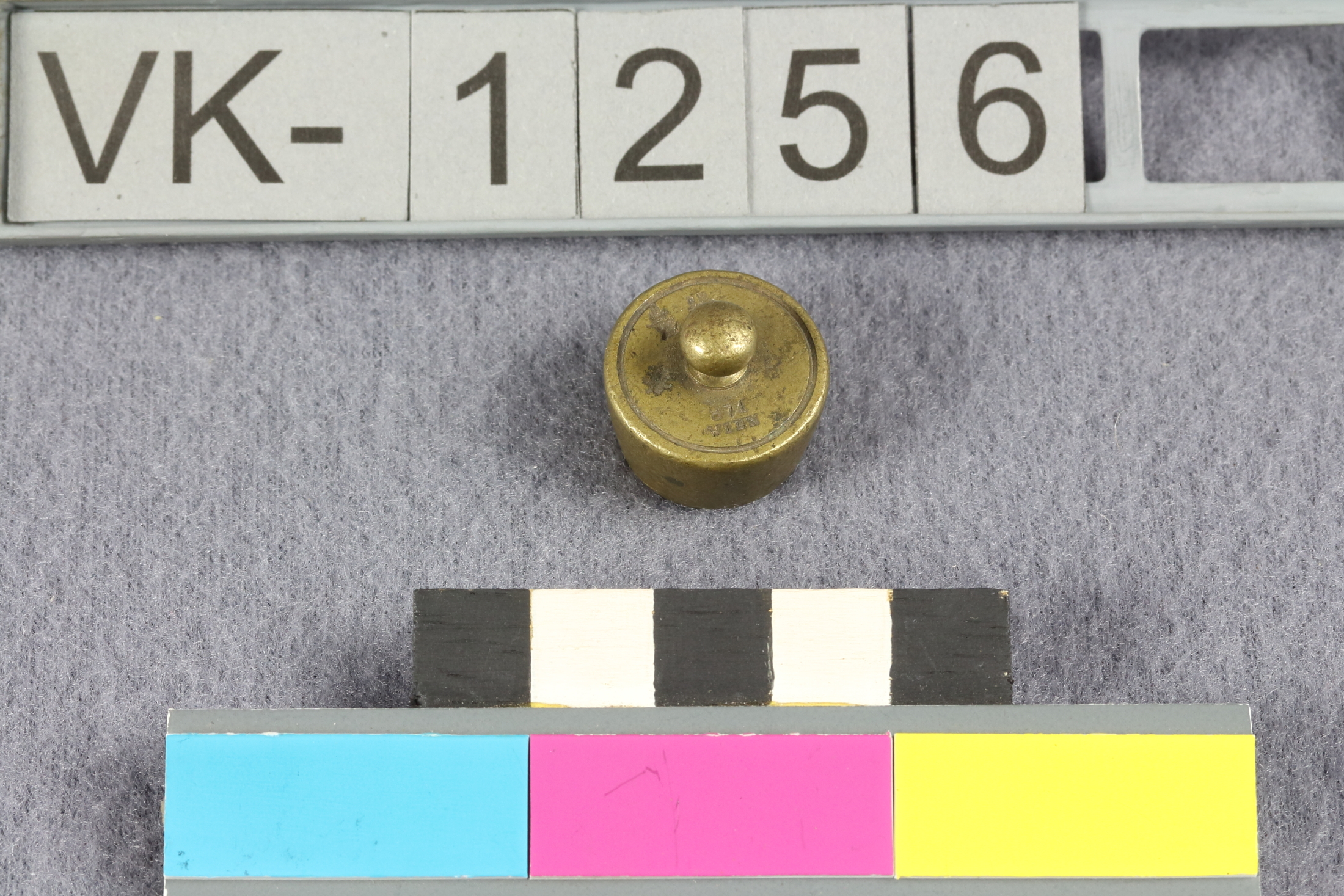 Rundes Messinggewicht mit diversen Punzierungen und Knauf.