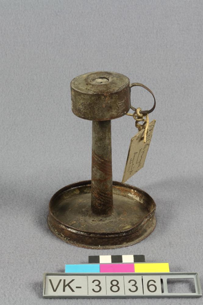 Kerzenhalter für eine Kerze, mit einem kleinen Henkel und einer runden Tropftasse.