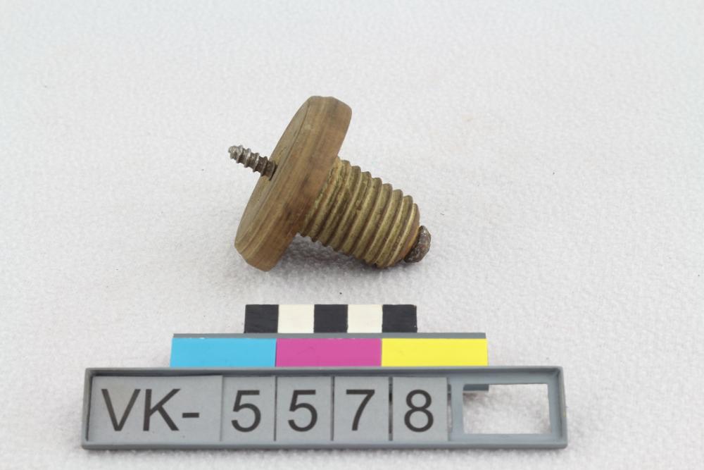 Ansatzstück: Holzgewinde mit Auflagefläche, darauf eine Eisenschraube.