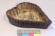 Ovale Backform aus Kupfer, innen verzinnt, mit senkrechter Profilierung und profilierter Standfläche.