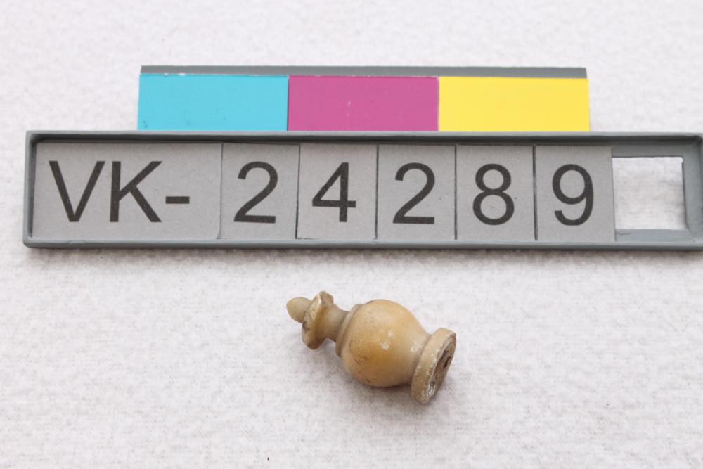 Gedrechseltes Zierelement aus Bein, möglicherweise für eine Standuhr.