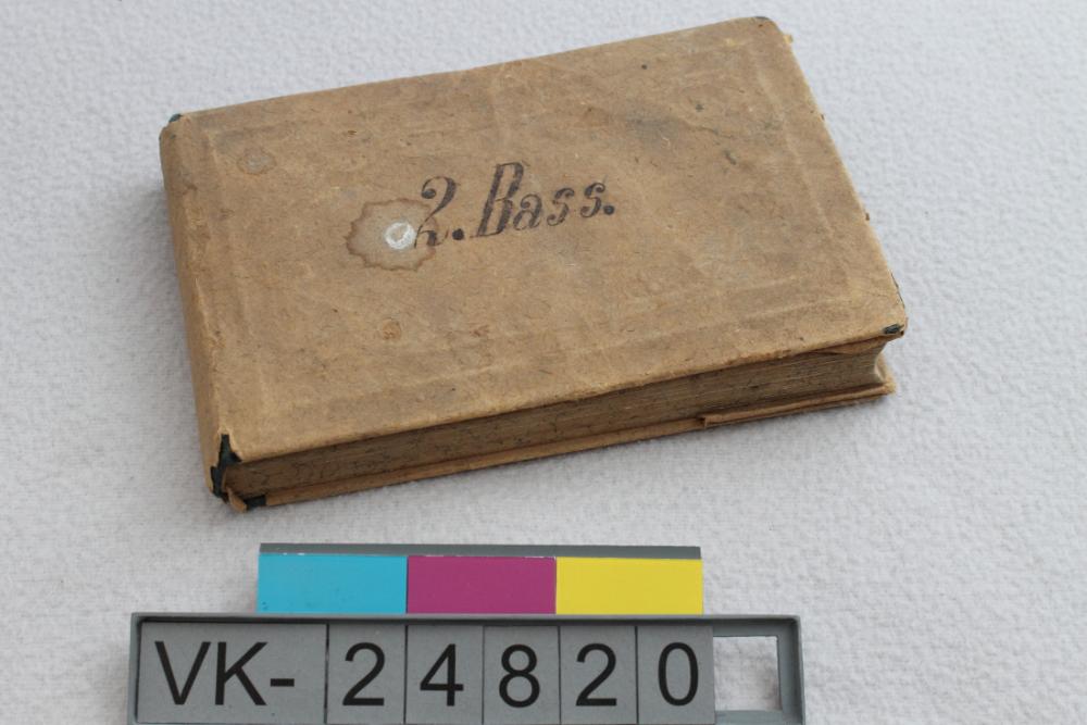 Liederbuch mit 333 Seiten: "Regensburger Liederkranz", Ausgabe für den zweiten Bass. Der Einband ist mit braunem Papier eingeschlagen, darauf von Hand: "2. Bass.".