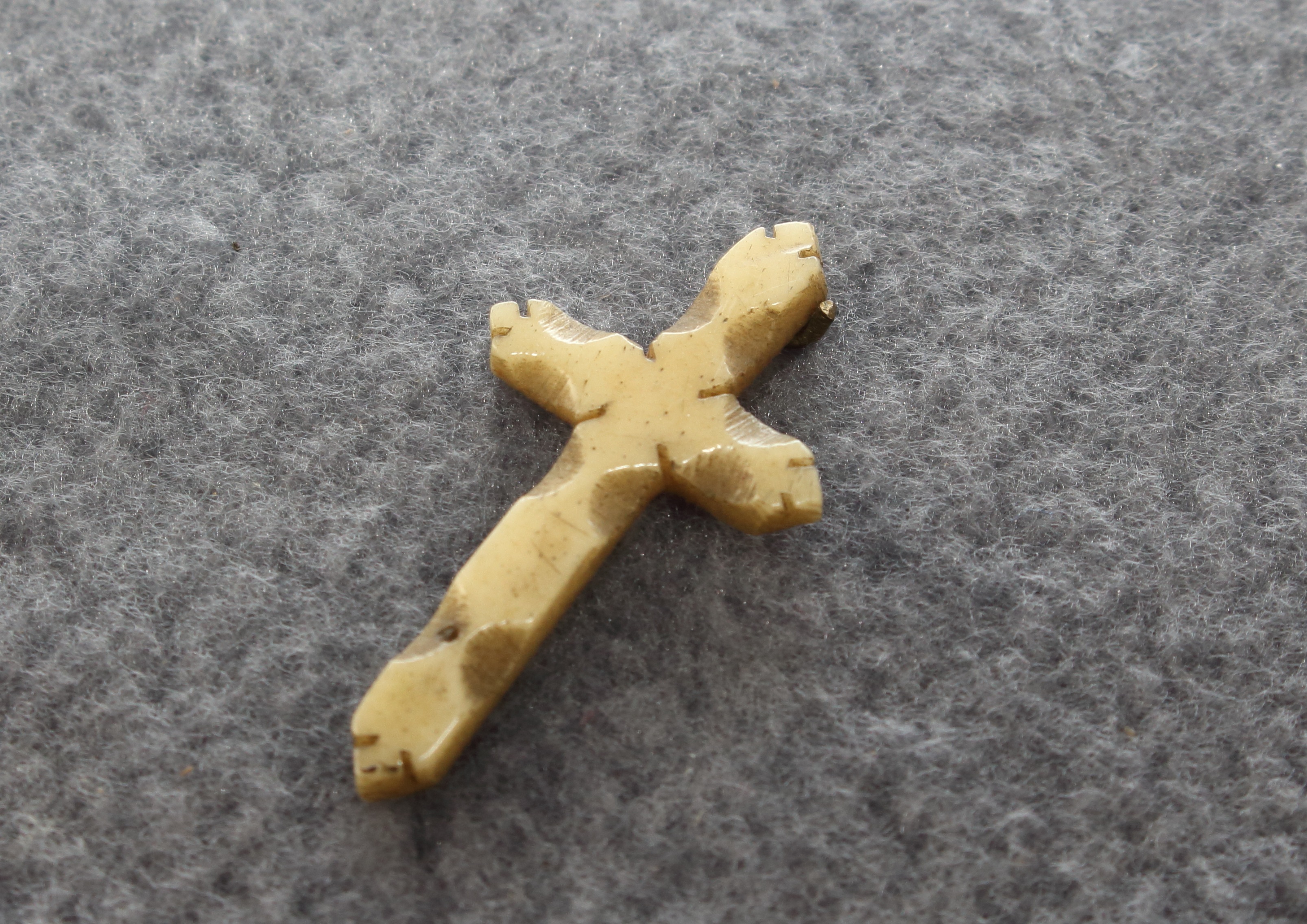 Kleiner geschnitzter Kreuzanhänger. Das Objekt befindet sich in der Schatulle mit der Inventarnummer VK-25149.