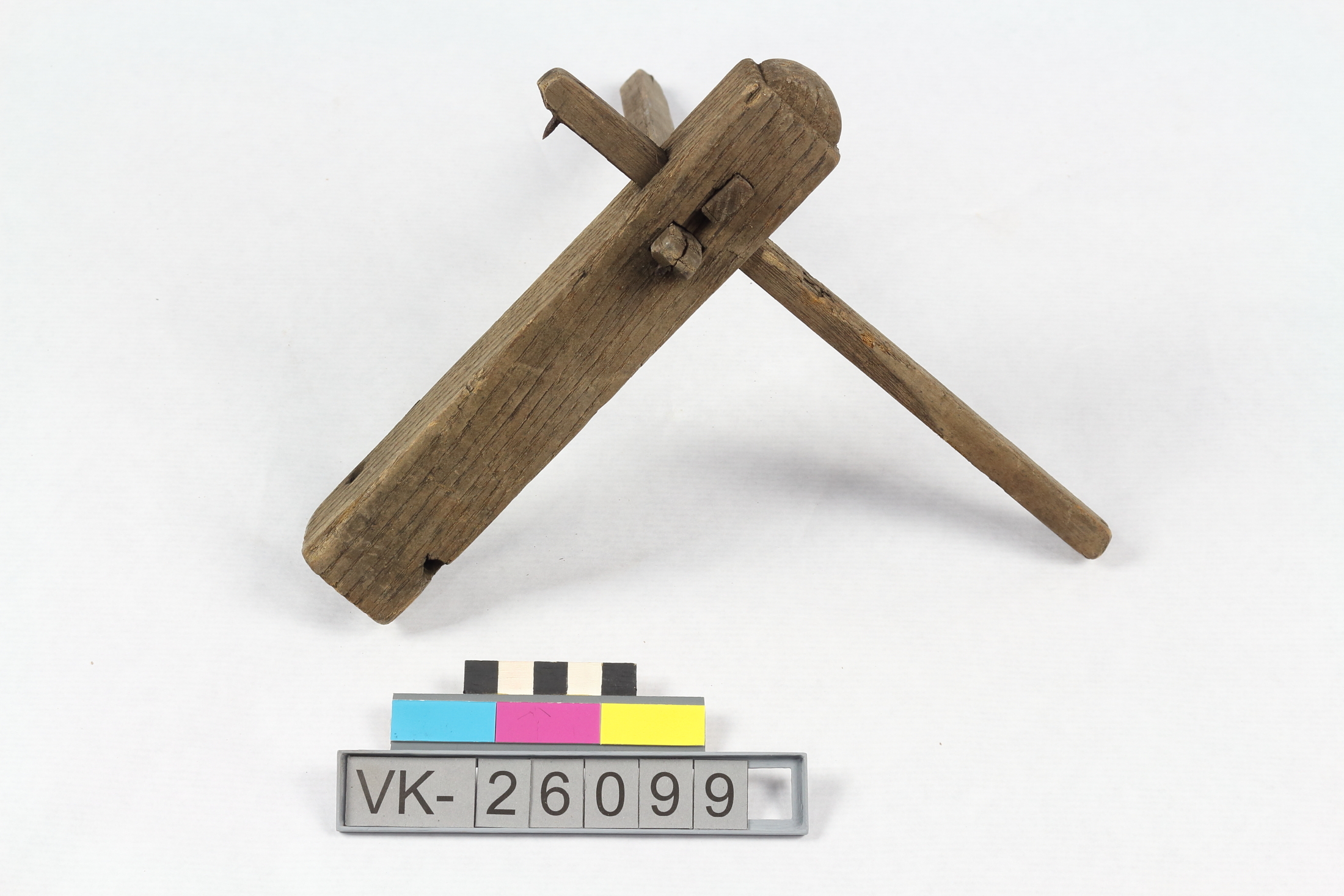 Streichmaß mit zwei Stäben in einem Holzblock.