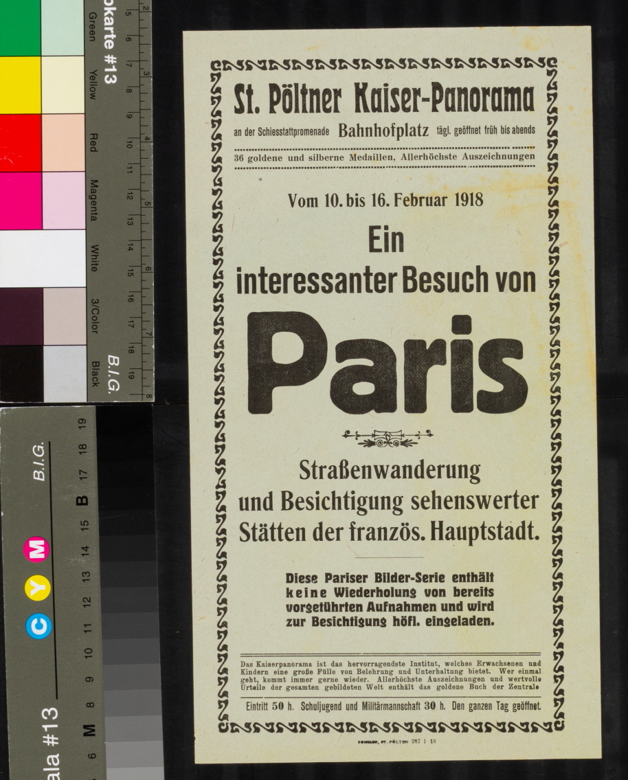 Programmankündigung, St. Pöltner Kaiser-Panorama, St. Pölten, Bahnhofsplatz