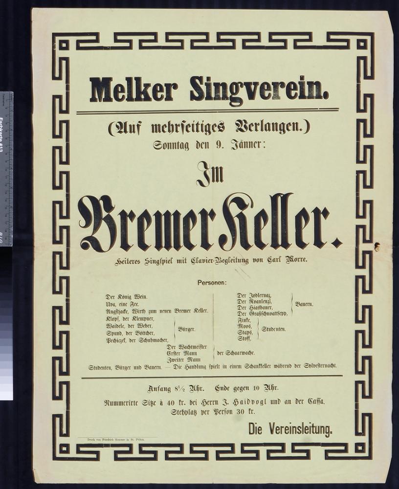 Konzert, Melker Singverein Bremer Keller, 9. Jänner 1881.