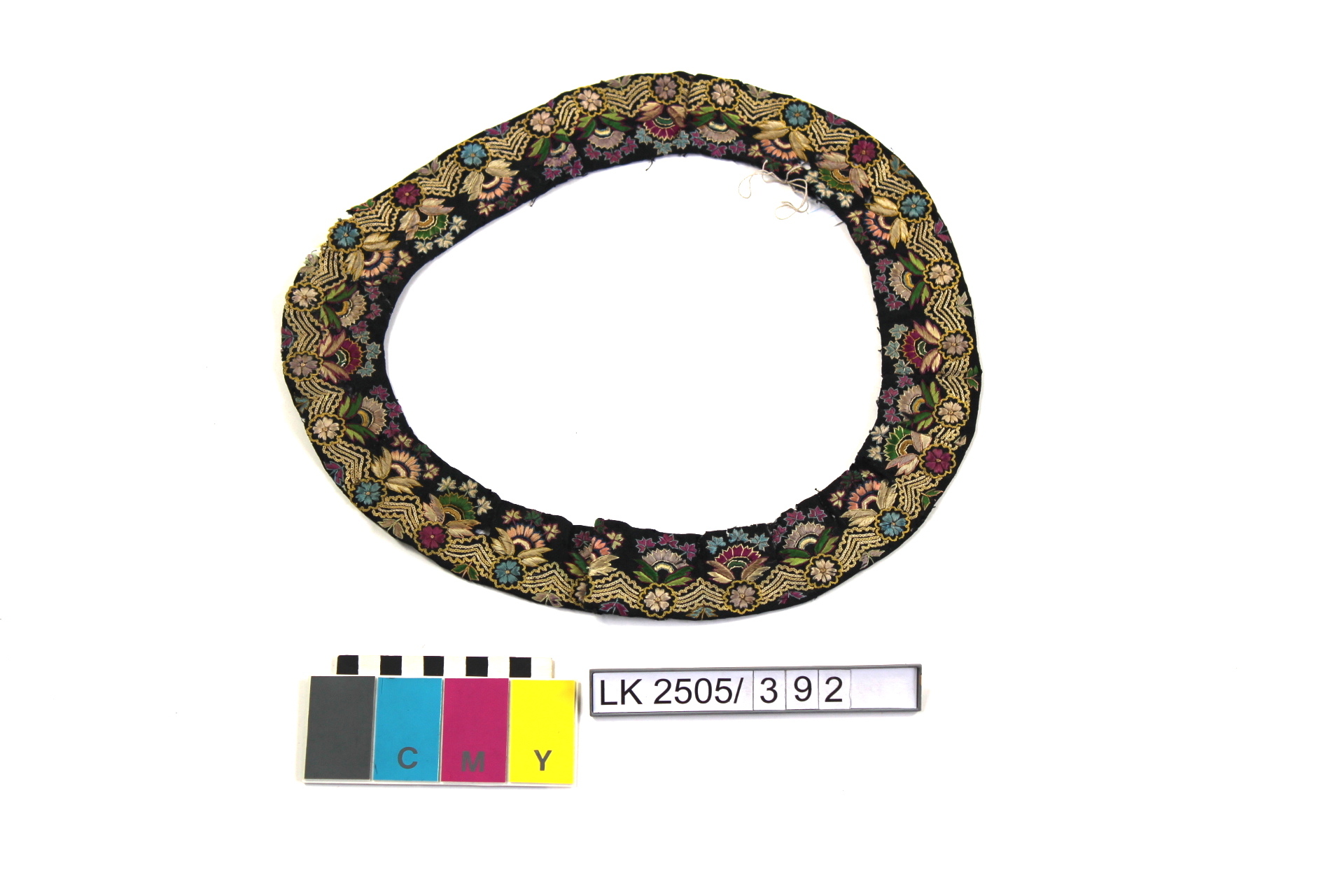 Besatz mit Stickerei, bunte Blumen; Stickprobe für Garnstickerei
