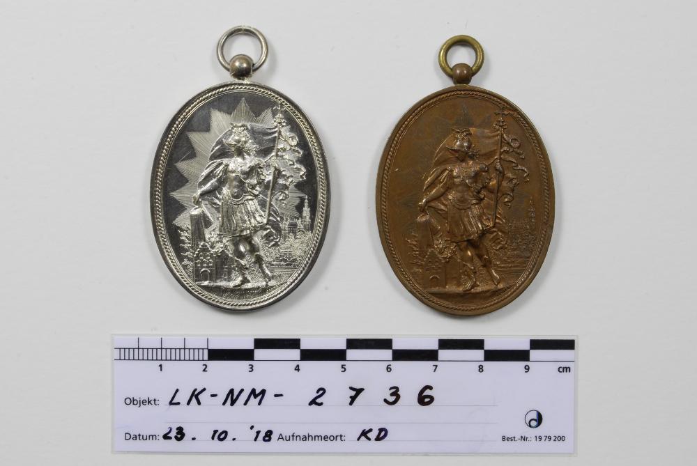 1 x Bronze, geprägt, patiniert, mit angelöteter Öse