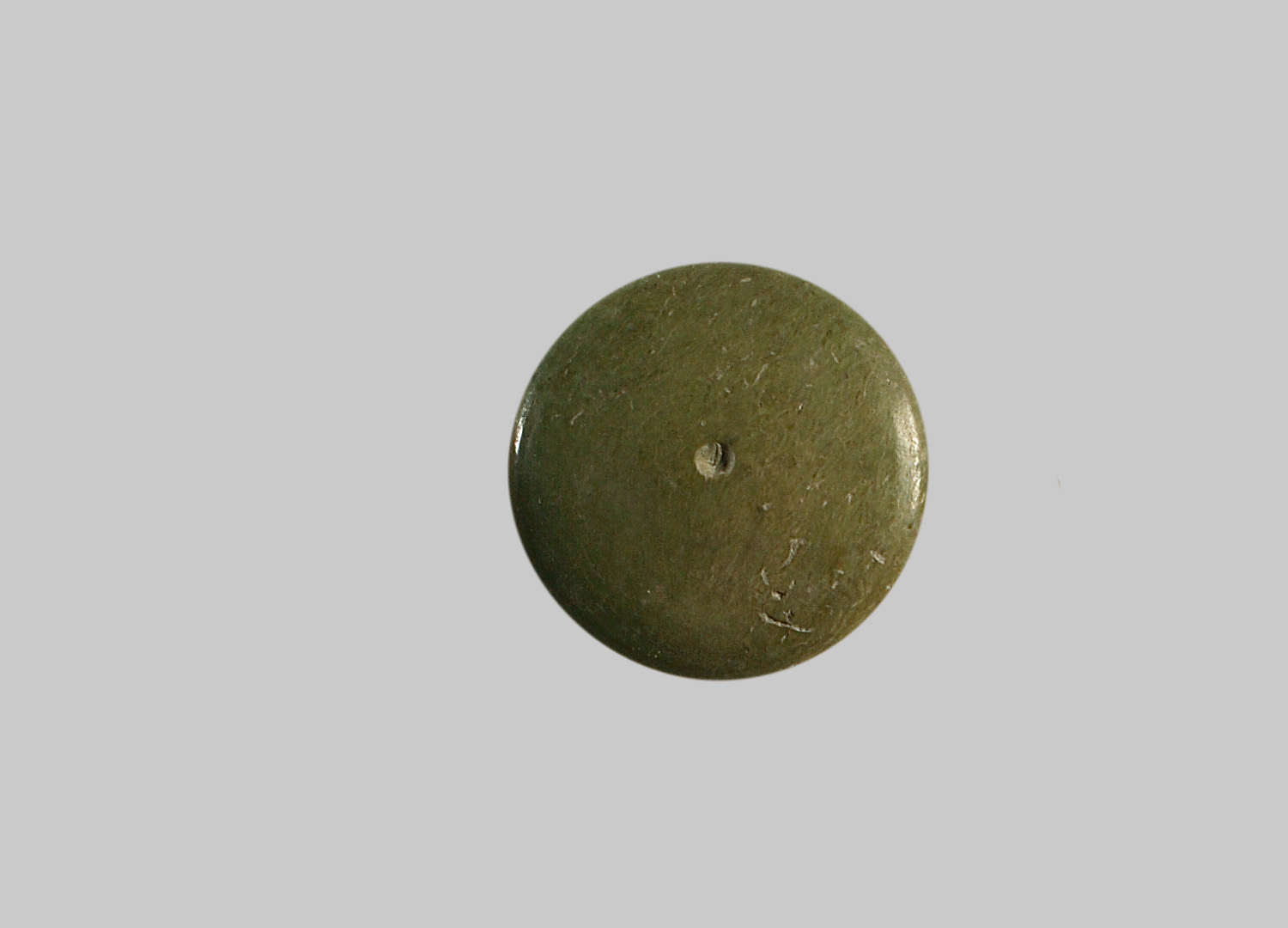 Leicht gewölbte Oberseite mit zentralem Punkt. Flache, glatte Unterseite.
