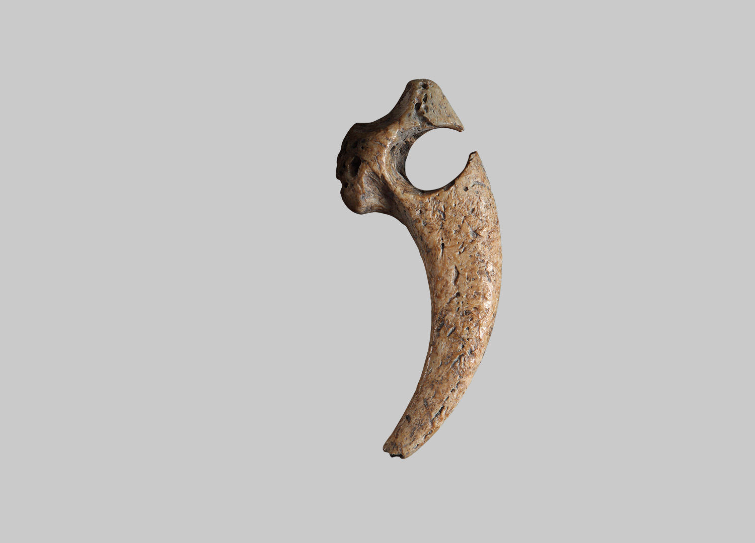 Die Vogelkralle ist mit einem Loch versehen und wurde wahrscheinlich als unheilabwehrendes Amulett getragen.