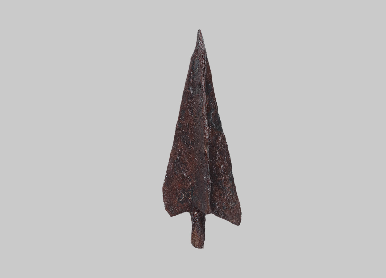 Dreiflügelige Pfeilspitze mit im Querschnitt kreisförmigem Dorn.