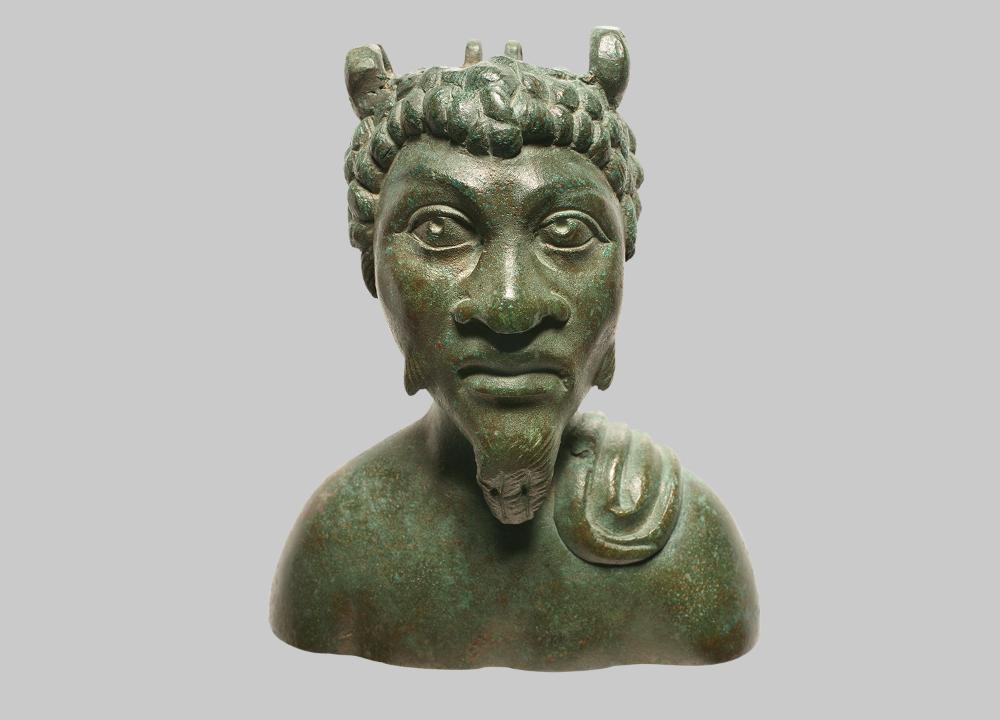 Büstengefäße dieser Art dienten als Balsamarien oder als Ölbehälter. Das vorliegende Stück wurde dem Verstorbenen als kostbare Grabbeigabe mitgegeben. 'Exotische' Darstellungen kamen in der mittleren Kaiserzeit für Gebrauchsgegenstände in Mode. Sie hatten keine kultbezogene Bedeutung; wahrscheinlich wurde ihnen eine unheilabwehrende Wirkung zugeschrieben.