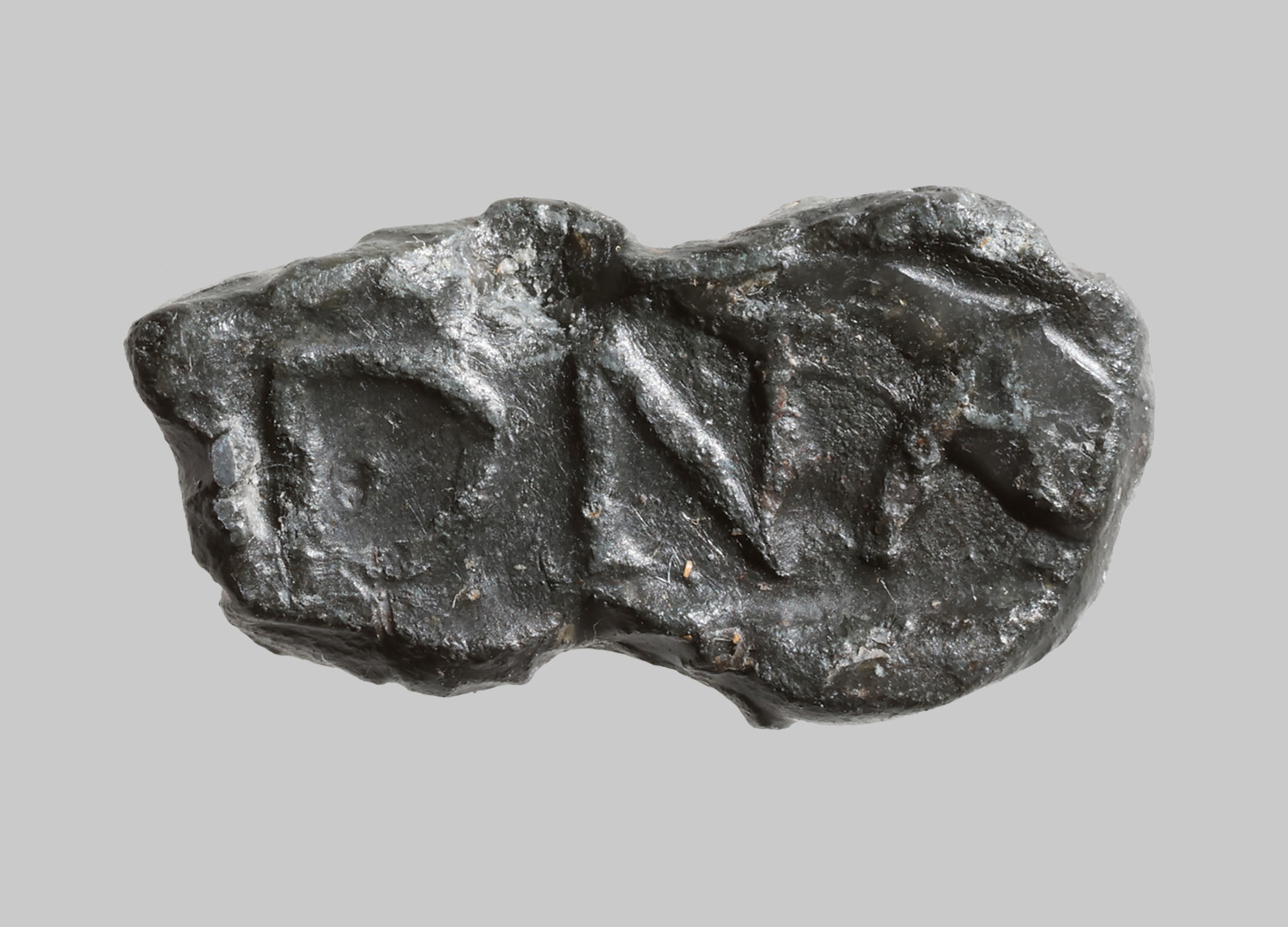Eine längliche, flache Marke mit Stempel auf der die Buchstaben "DNA" zu lesen sind.