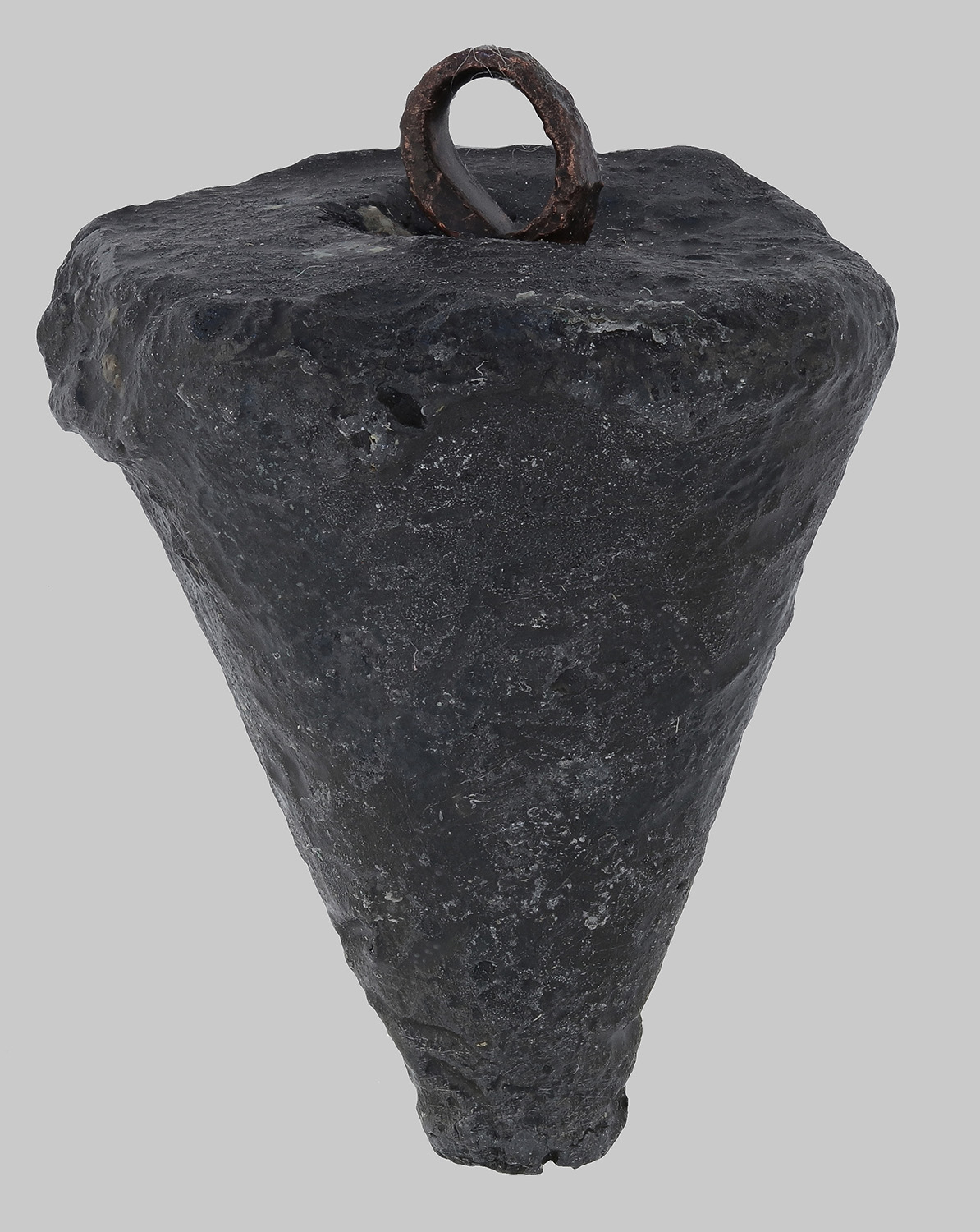 Konischer Körper aus Blei; oben Öse aus Eisen