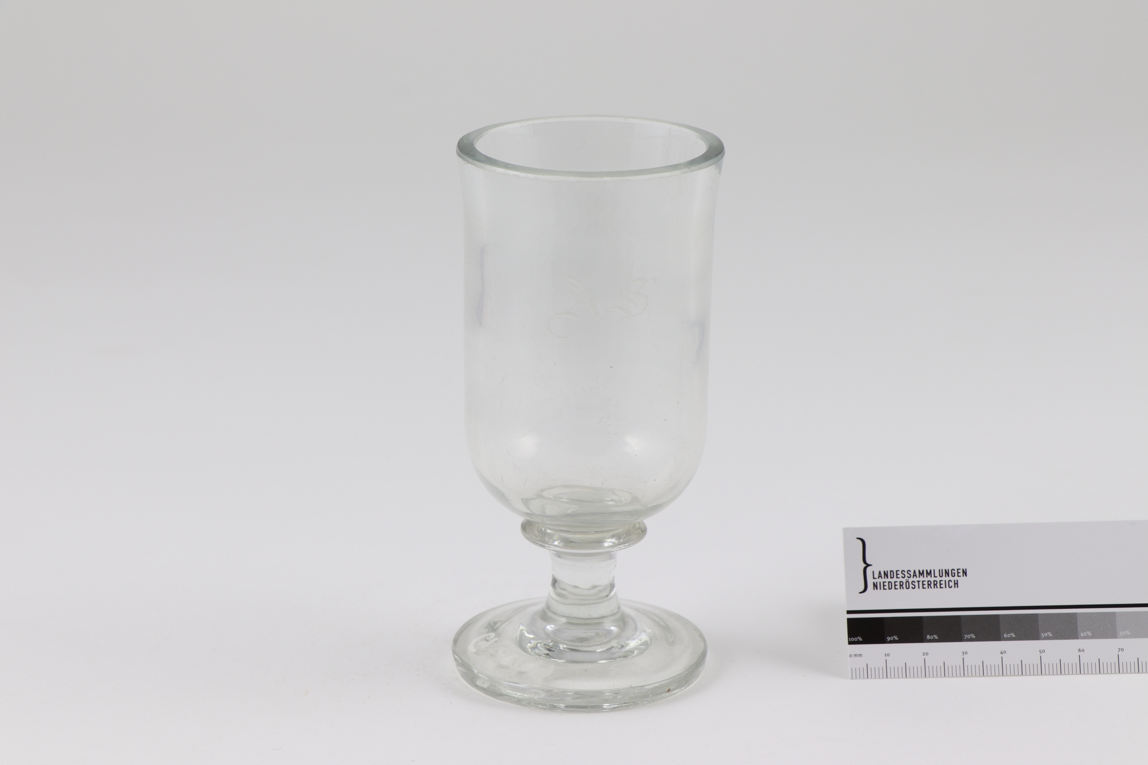 Rundes Teeglas mit gerader Wandung. Monogramm graviert.