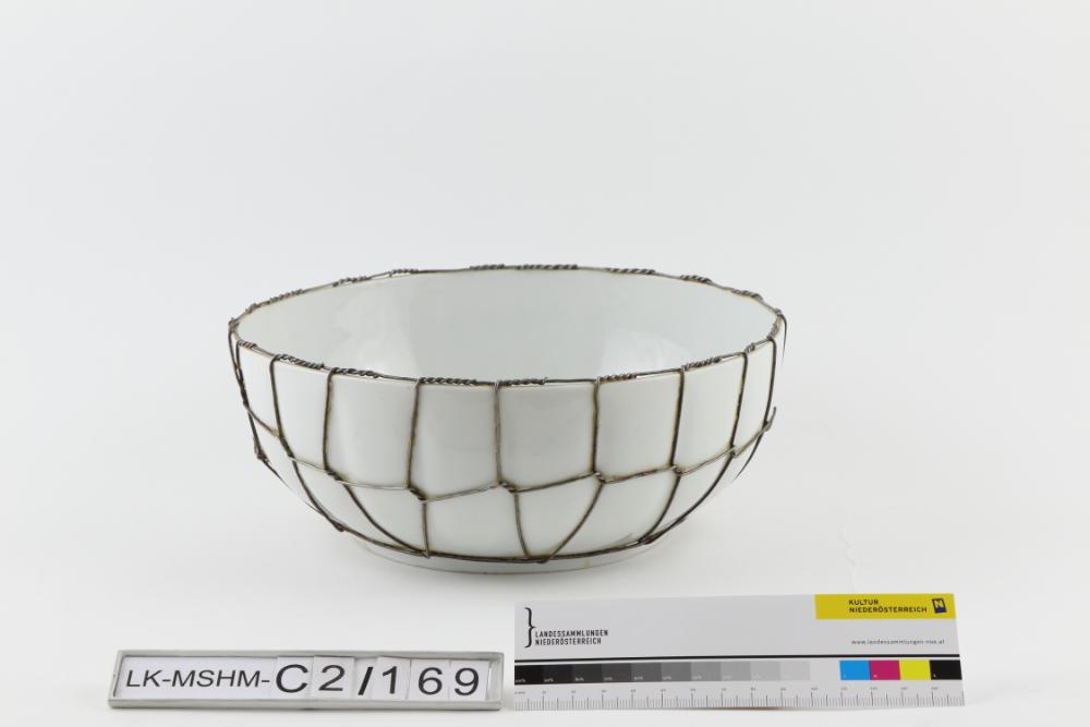 Runde Schüssel, in ein Drahtnetz eingehäkelt