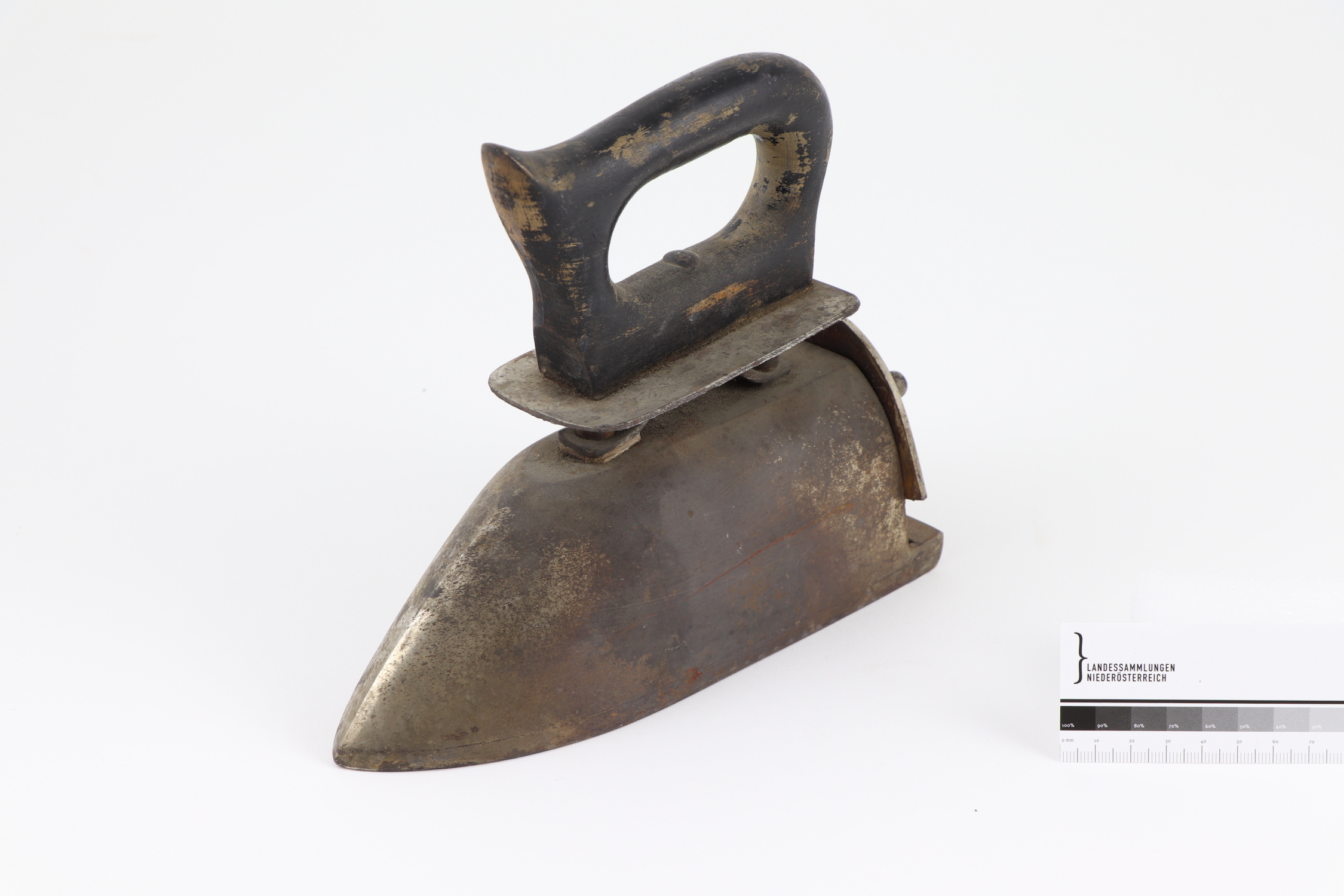 Bügeleisen mit Schuber und schwarzem Holzgriff