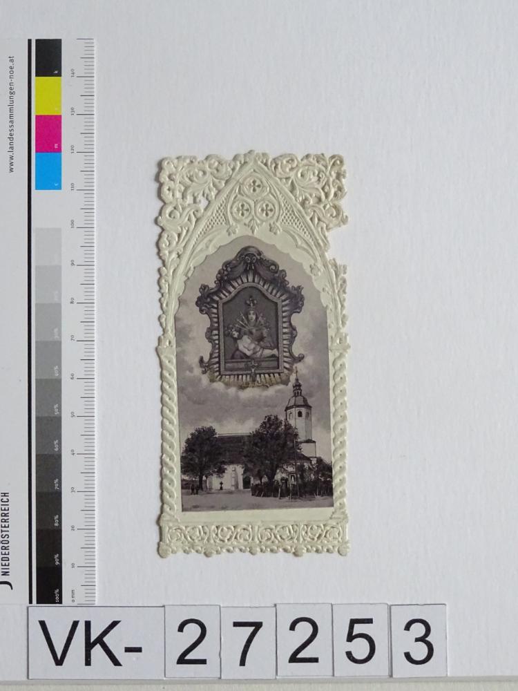 Zistersdorf, "Maria Moos"; Vorderseite: Gnadenbild = Pietà, Wallfahrtskirche; Rückseite: "Trost im Gebet"