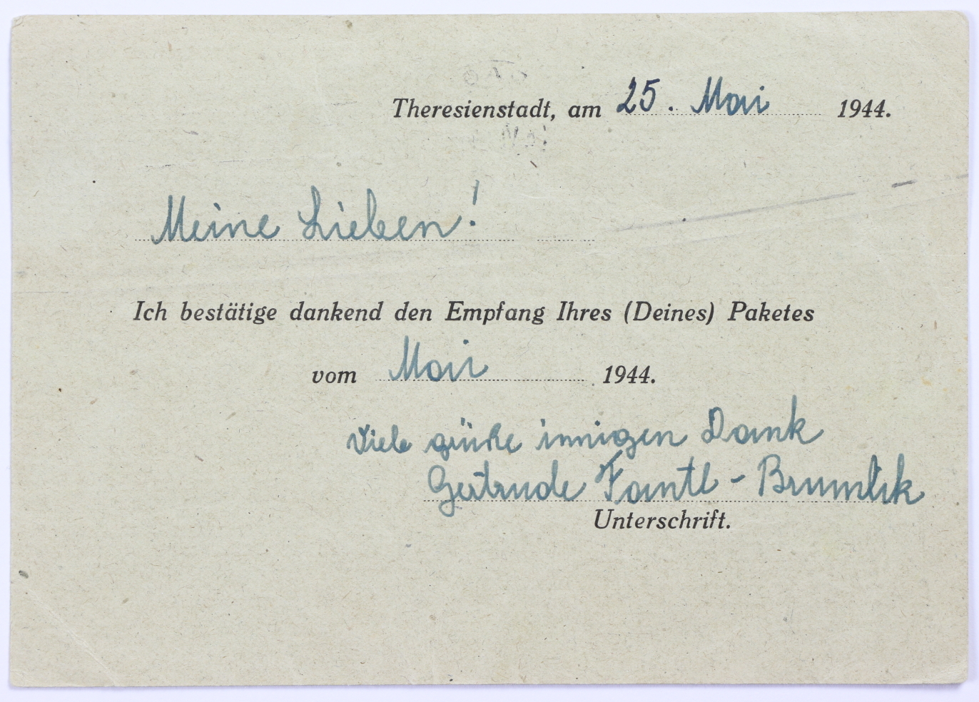 Empfangsbestätigung Paket Theresienstadt