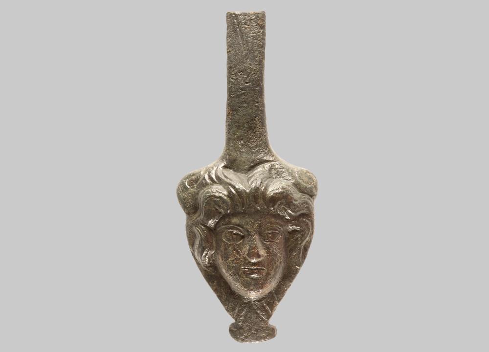 Unterer Henkelabschluss in Form eines plastisch modellierten jugendlichen Kopfes (Satyr?).
