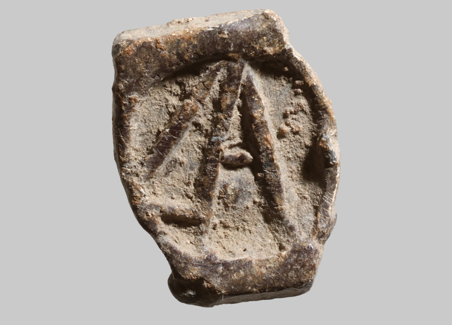 Rechteckige, flache Marke mit rundem Stempel; Seiten konvex durch Stempel; Buchstaben L oder C und A