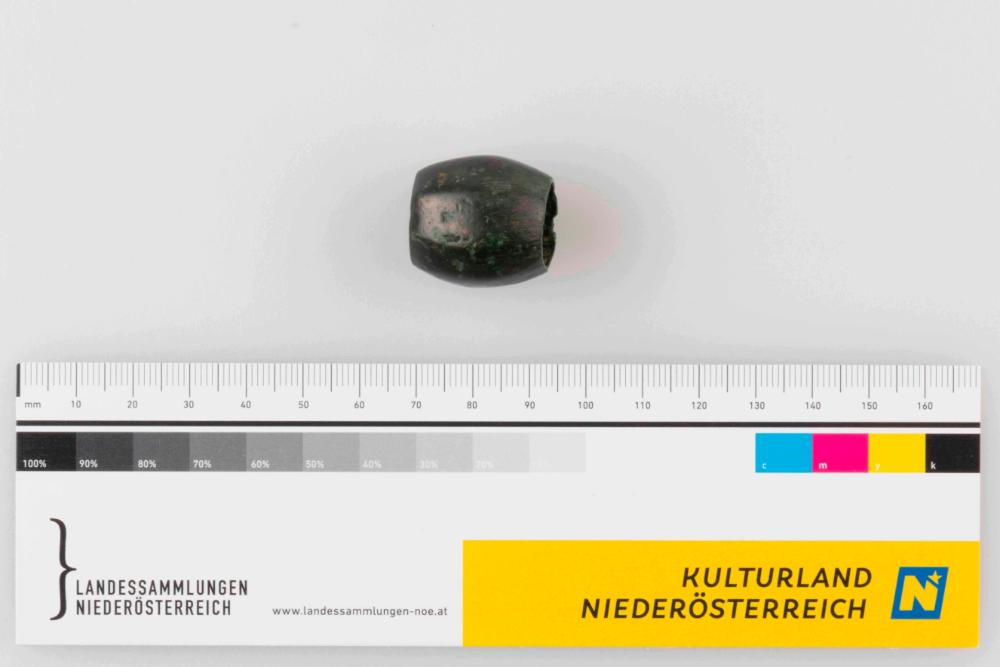 Die achteckige Schwertperle aus Buntmetall wurde zusammen mit einem gezielt deformierten Schwert und einer Lanze sowie kleinen Artefakten, die mutmaßlich zur Schwertscheide gehörten, in einem Depot entdeckt. Die Perle war ursprünglich am Schwertgriff oder an der Schwertscheide angebracht. Es wird angenommen, dass derartige Anhänger eine amulettartige Funktion hatten. Sie wurden aus geschliffenem Glas, Bernstein oder Edelsteinen sowie mit Edelmetallfassungen hergestellt.