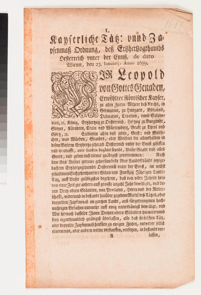 Kaiserliche Tatz- und Zapfenmassordnung des Erzherzogtums Österreich unter der Enns