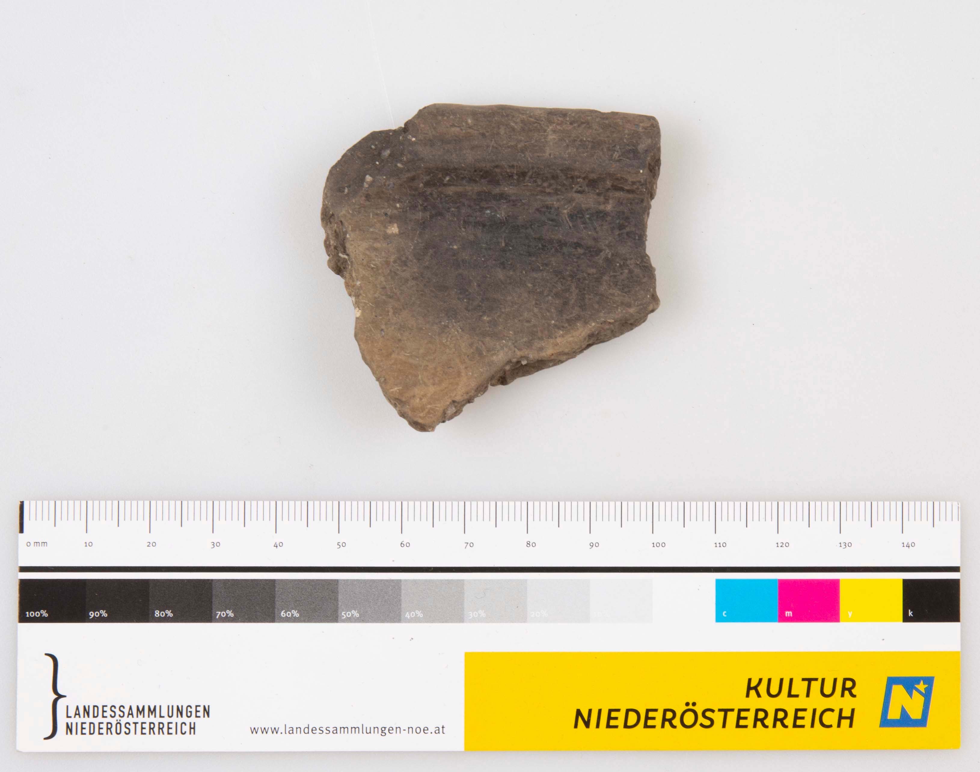 Randfragment einer Schale mit waagrecht abgeschnittenem, innen leicht verdicktem Mundsaum